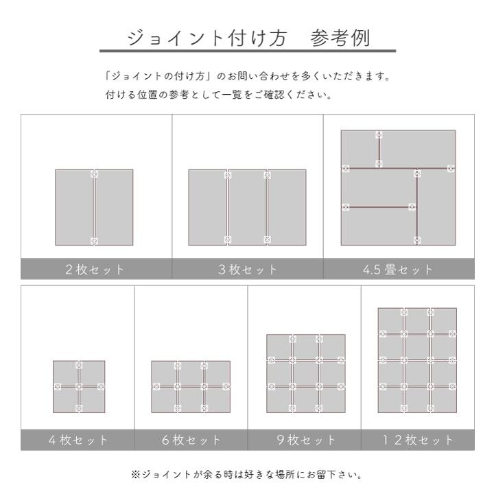 届いたユニット畳を床に置くだけで和のスペースが出来上がります。表生地には国産(九州産)のい草を使用しています。一本一本が太く、表皮が厚く、繊維がキメ細かいので弾力性があり、耐久性に優れています。い草には空気の自然浄化作用、湿度の調節作用などがあります。また汚れにくく、使用するうちに黄金色に変化し、味が出ます。中材には弾力性にこだわり15mm厚の硬綿を使用しました。硬綿にはヒバエッセンス加工を施しています。青森ヒバに含まれるヒノキチオールは天然の物質としてきわめて抗菌力が強い成分です(抗菌防臭効果)。また軽量タイプなので、持ち運び、設置、片づけなども楽にできます。連結用ジョイントを使用すれば、お部屋に合わせて簡単に何枚でもつなげることが出来ます。