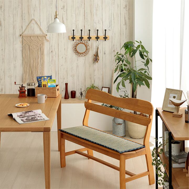 チェック柄のおしゃれない草のベンチパッド。ダイニングベンチに最適です。