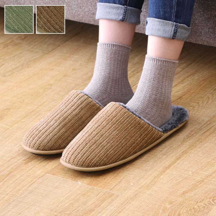 ご自宅用・来客用・オフィス用など幅広くどんな場面でもご使用いただけます。もこもこ素材でぬくもりのある肌触りなので素足で履くことが可能です。履いた時にフィットするので脱げにくく歩きやすいルームシューズです。裏側はTPR素材を使用しており、汚れた際は水拭きする事ができ、お手入れも簡単です。MサイズとLサイズの2サイズ展開で男性も女性も履けるのでお揃いでもご使用いただけます。