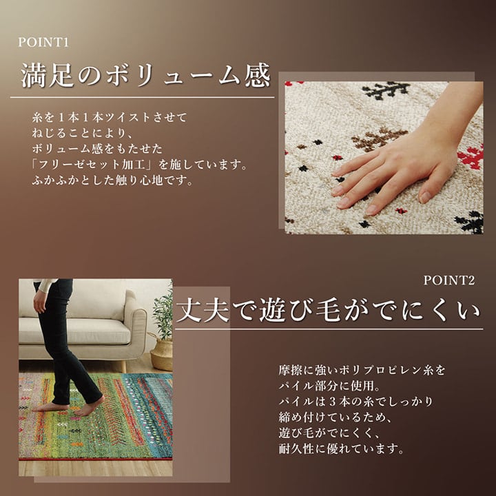 トルコ製でボリューム感のあるウィルトン織りカーペットです。本商品の『繊維の密度を表すノット数』は112,000ノットです。