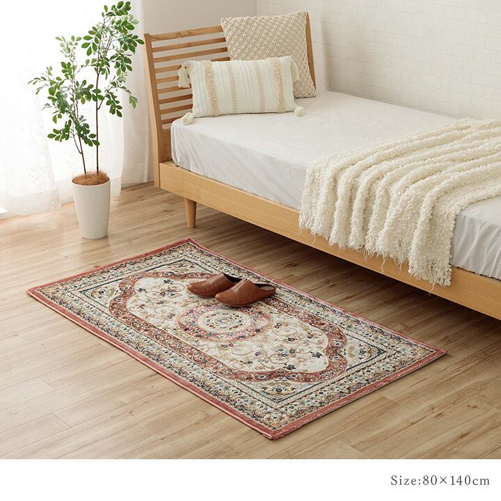 80×140cmサイズは、ベッドサイドや玄関マットなどリビング以外のお部屋でもお使いいただけます。