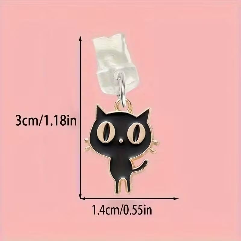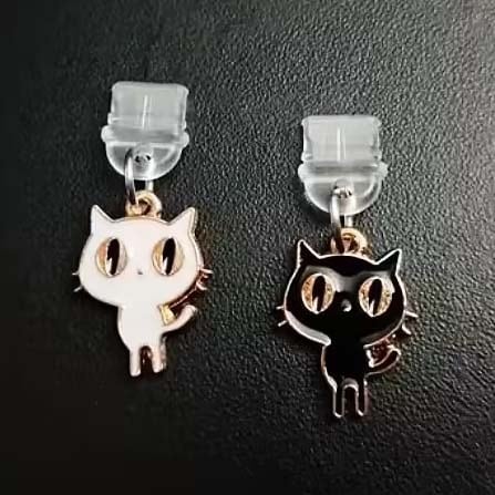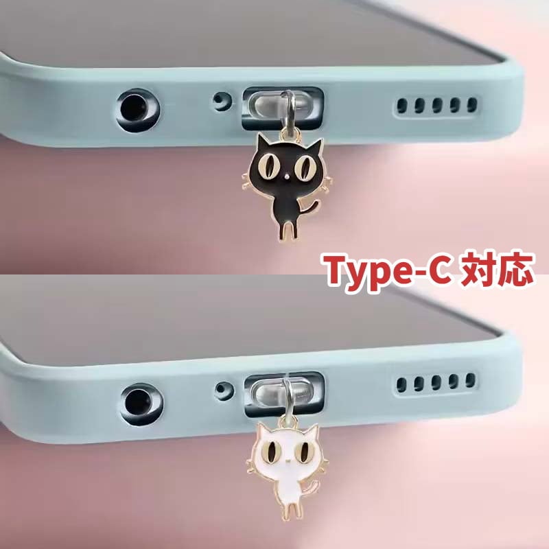 【100円プレゼント】黒・白の2個セット スマホ アクセサリー ネコちゃんのチャーム ダストプラグ コネクタ 充電ポート 防塵プラグ コネクタカバー