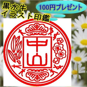 【100円プレゼント企画】 イラスト印鑑 黒水牛18mm 1本 アタリ付き 絵心印鑑 認印 銀行印