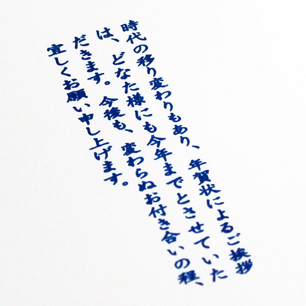 「年賀状じまい5 スタンプ 浸透印 タテ書き」は、年賀状での新年の挨拶を終わりにしようと思っている方にぴったりの便利アイテムです。最後の年賀状を作成するのに、簡単で楽しみながら準備できます。