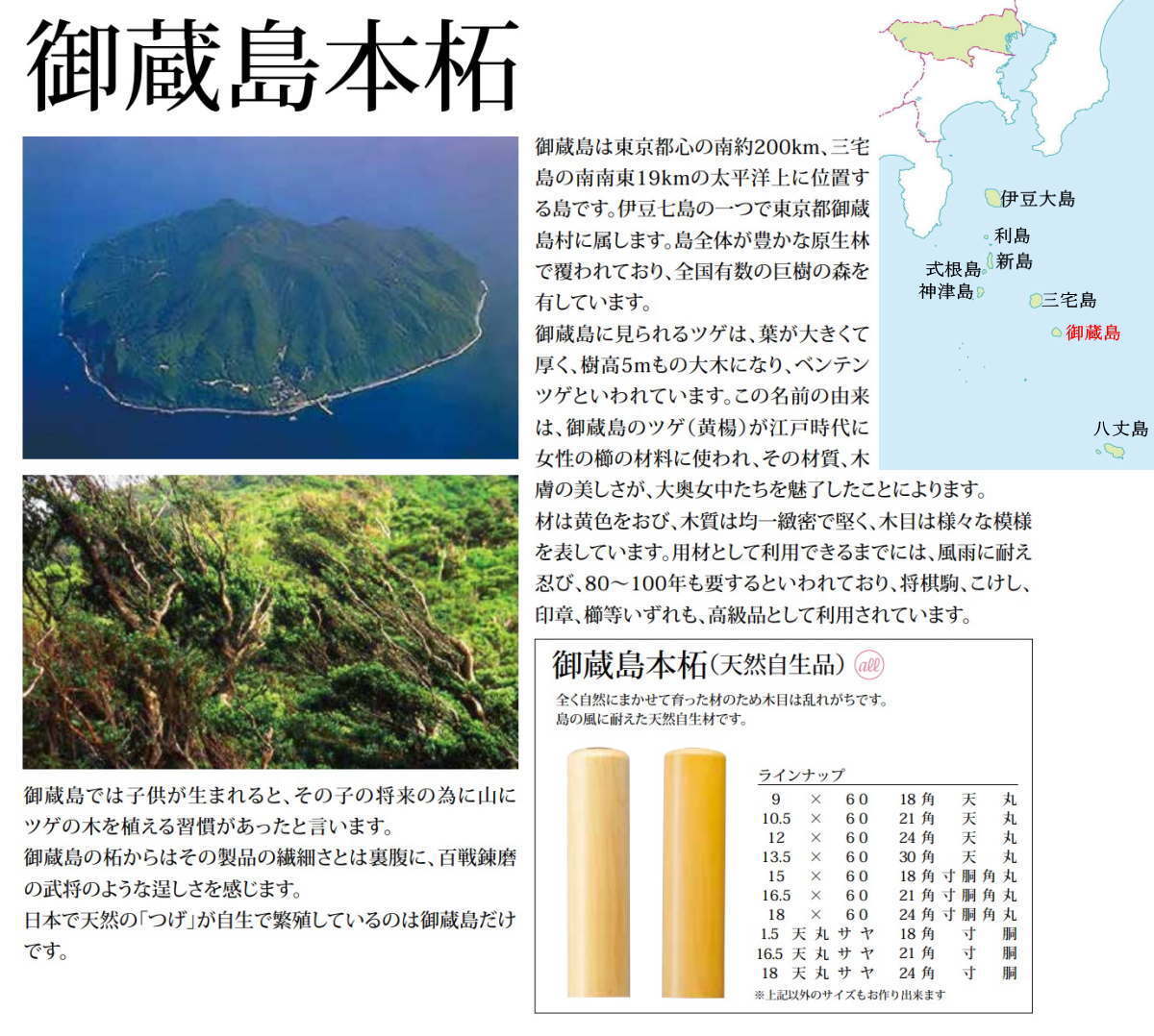 ぬくもりのある、そして逞しくもある天然本柘の御蔵島印鑑を、