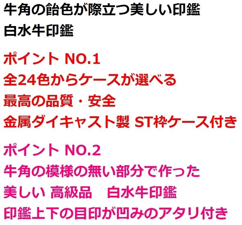 牛角 白水牛 は、牛角の飴色が際立つ美しい印鑑です。