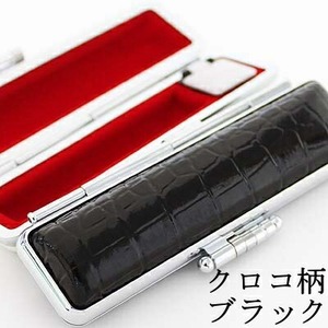 黒水牛印鑑 セット 1本 13.5mm。オプションで、牛角色・牛角色・牛角白・本柘に変更可能。 印鑑ケース付セット アタリ付き